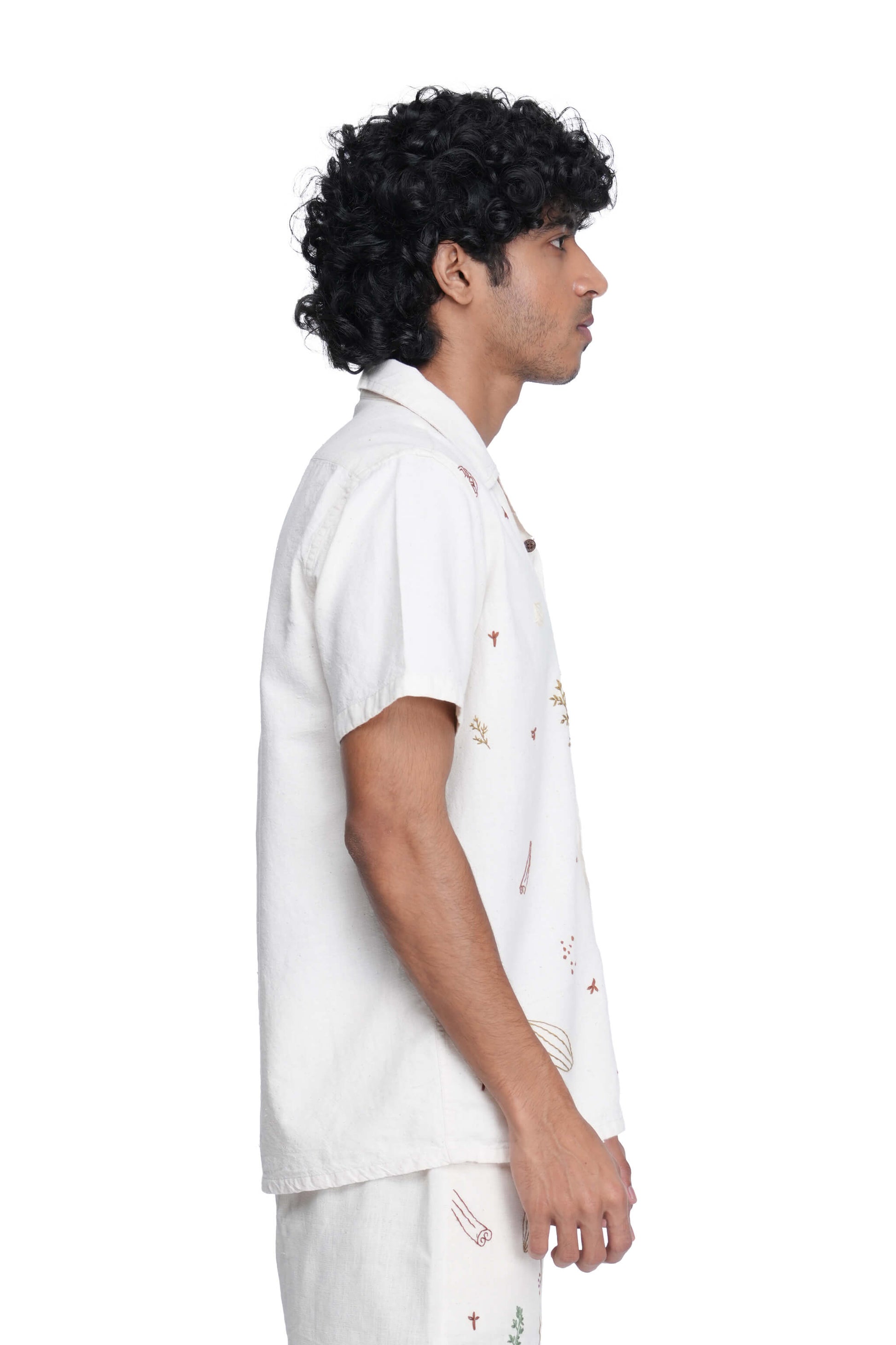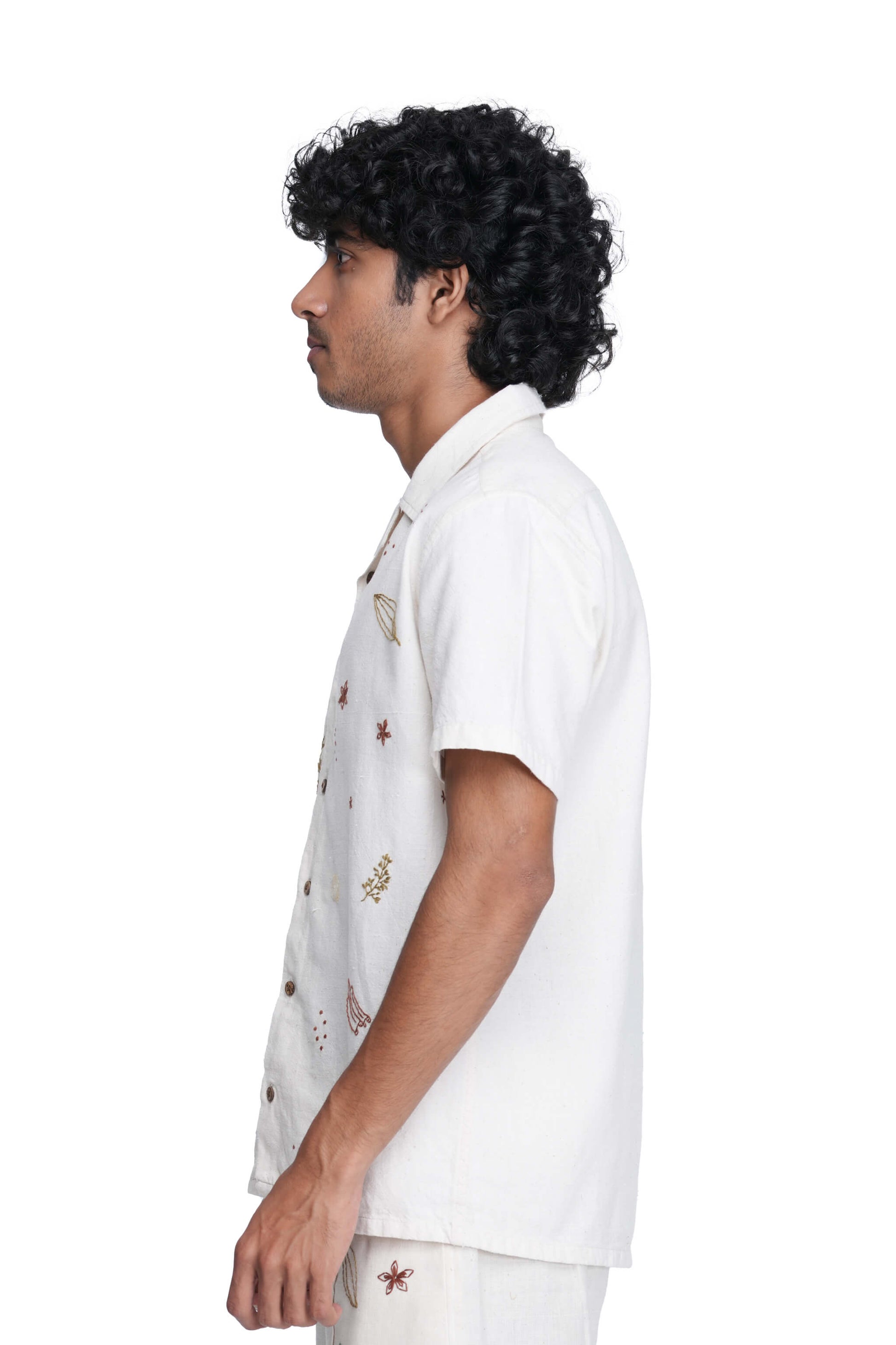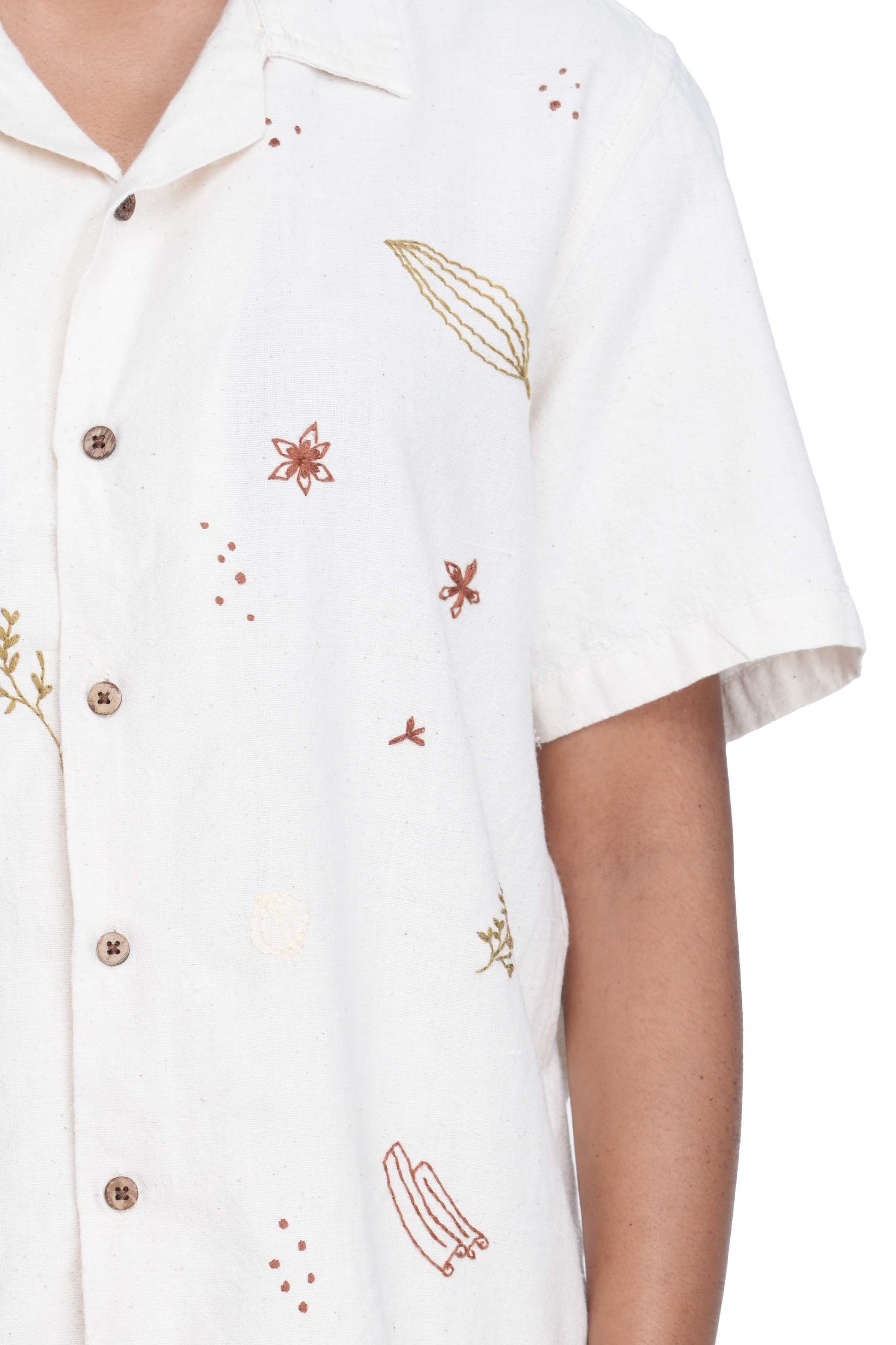 This S/S 25 collection shirt is made entirely of handloom cotton. airy and light, making it perfect for all-day wear. This matching panel shorts and shirt co-ord set have unique spice motifs all over.